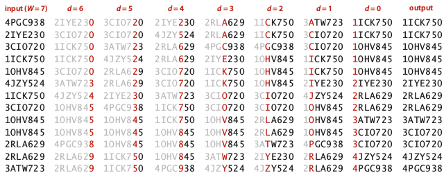 Image below illustrate MSD on small set of string which has R=15 (LOWERCASE encoding):
